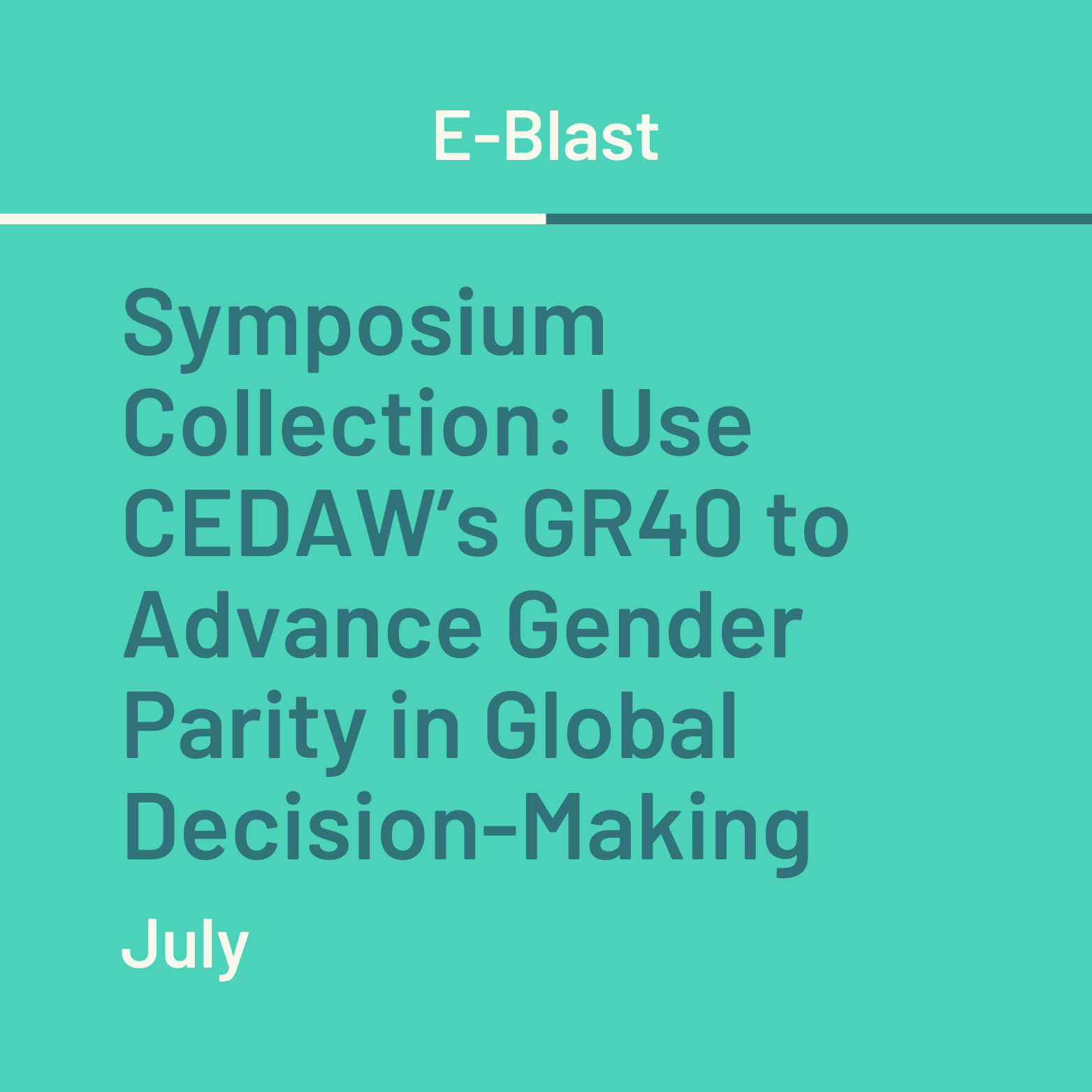Jul, 25Symposium Collection: Use CEDAW’s GR40 to Advance Gender Parity in Global Decision-Making READ MORE
