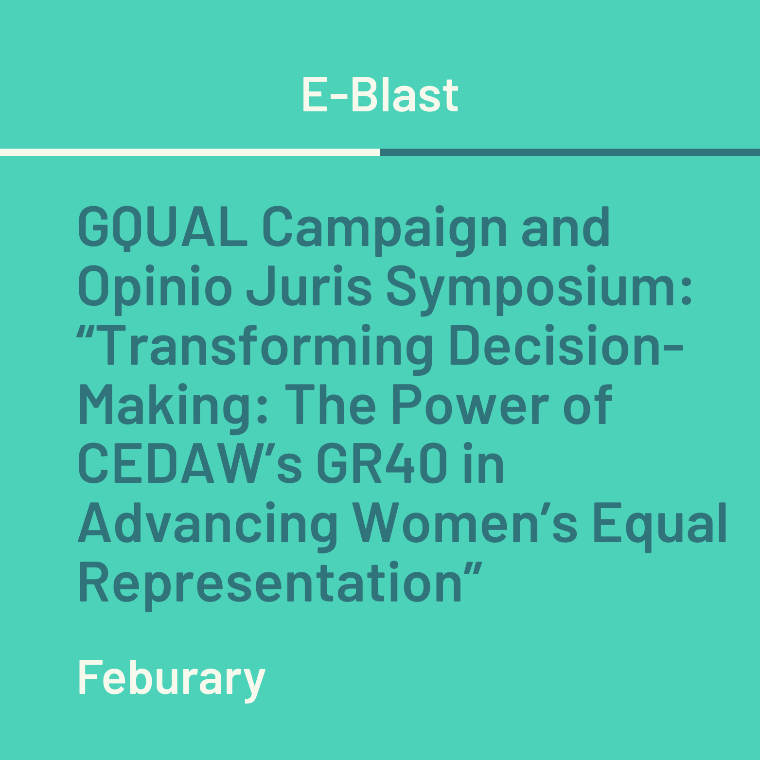 Feb, 25GQUAL Campaign and Opinio Juris Symposium “Transforming Decision-Making: The Power of CEDAW’s GR40 in Advancing Women’s Equal Representation” READ MORE
