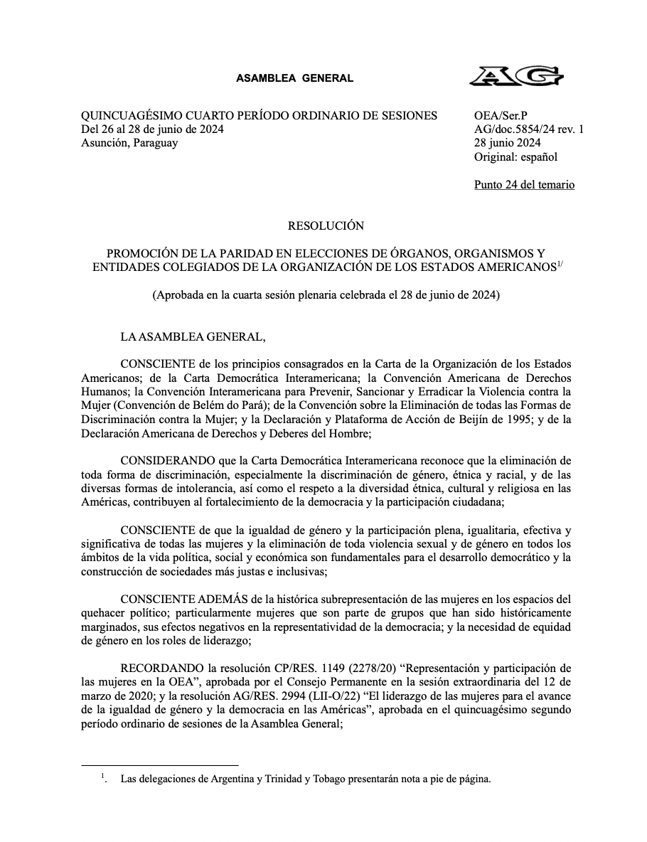 RESOLUCIÓN: PROMOCIÓN DE LA PARIDAD EN ELECCIONES DE ÓRGANOS, ORGANISMOS Y
