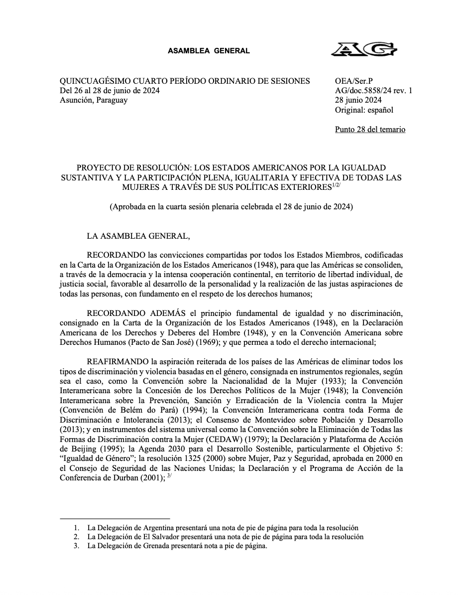 PROYECTO DE RESOLUCIÓN: LOS ESTADOS AMERICANOS POR LA IGUALDAD SUSTANTIVA Y LA PARTICIPACIÓN PLENA, IGUALITARIA Y EFECTIVA DE TODAS LAS MUJERES A TRAVÉS DE SUS POLÍTICAS EXTERIORES / /