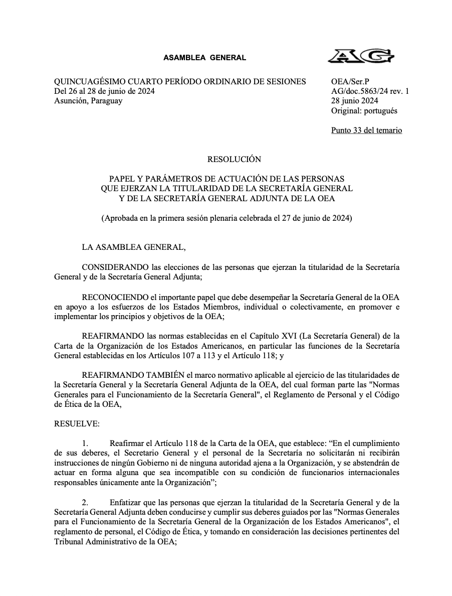 Y DE LA SECRETARÍA GENERAL ADJUNTA DE LA OEA